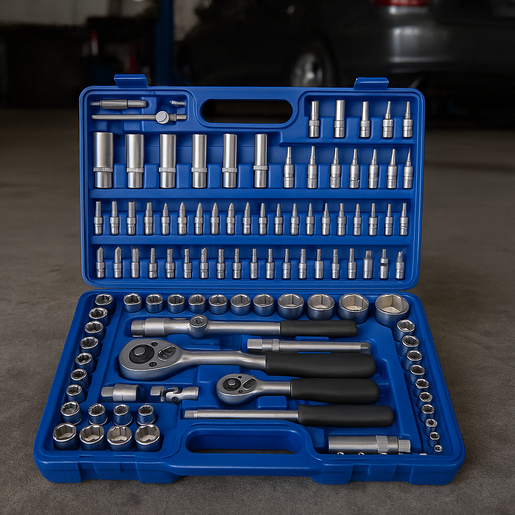 Con este maletín nunca te faltará la herramienta adecuada. Incluye dados, puntas, adaptadores y trinquetes en diferentes medidas, lo que te garantiza estar preparado para cualquier reparación en tu hogar, vehículo o taller. ¡Todo en un solo kit organizado y listo para usar!