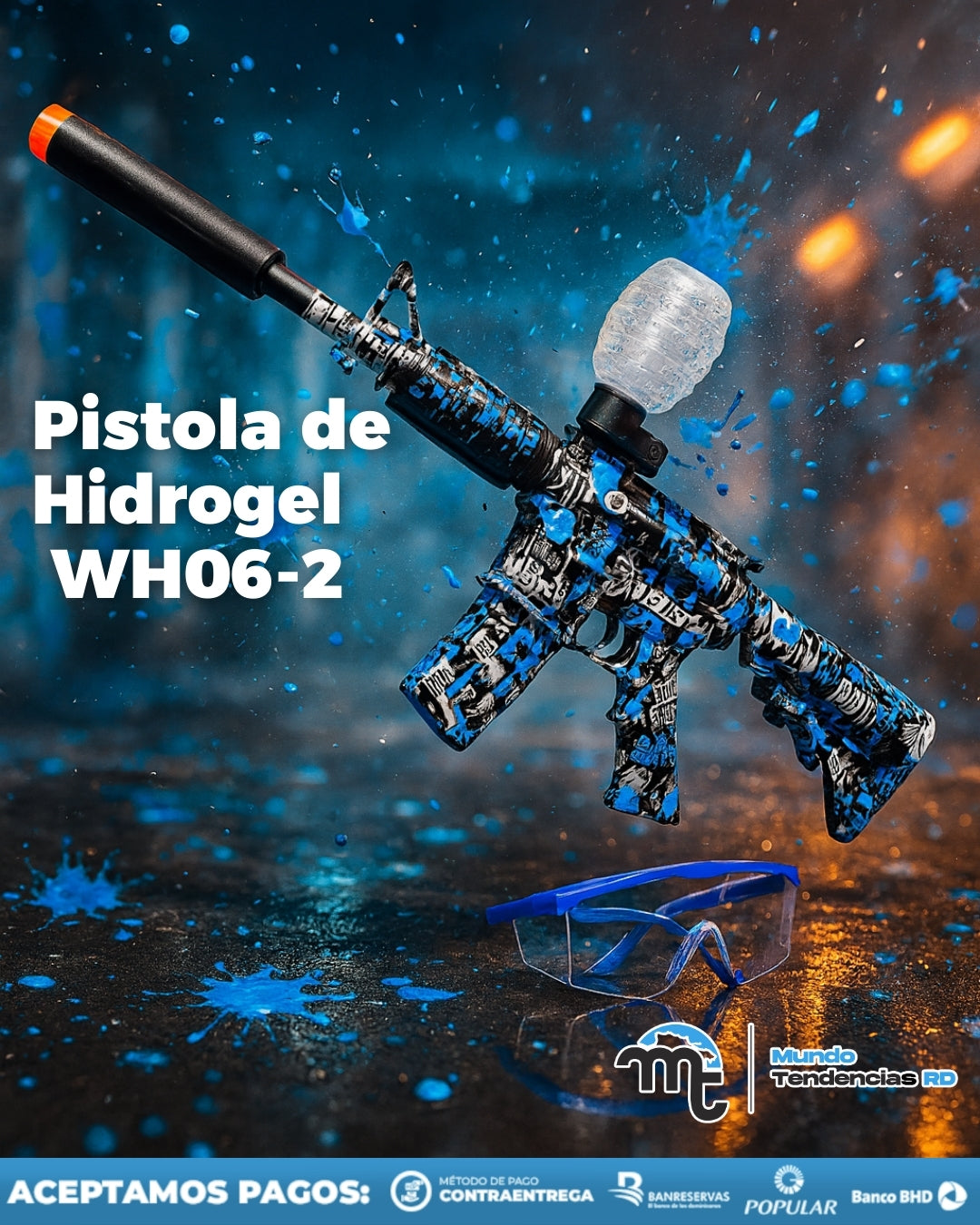 Porque la WH06-2 te da diversión real sin reguero: las bolitas de hidrogel se desintegran, así que juegas en espacios privados sin complicarte limpiando. Es económica por partida (perlas baratas + recarga USB, sin pilas), ligera y cómoda para sesiones largas y fácil de preparar: hidrata, carga y listo. Además, compras sin riesgo en RD: envío gratis, pago al recibir y garantía. Es la forma más práctica, segura y accesible de armar un plan con el coro en casa.